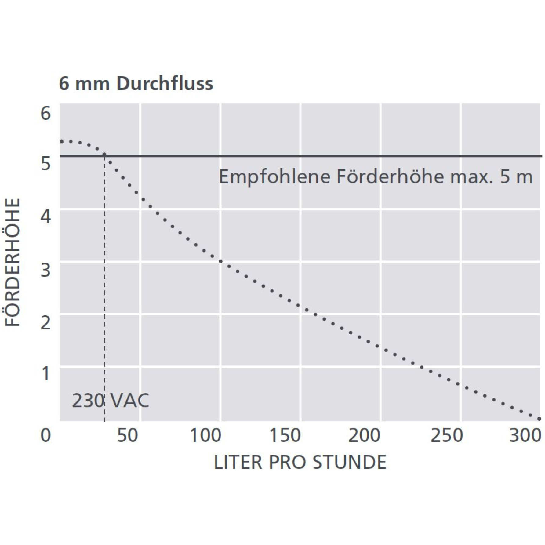 Maximaler Durchfluss: 550 l/h bei 0 m Förderhöhe